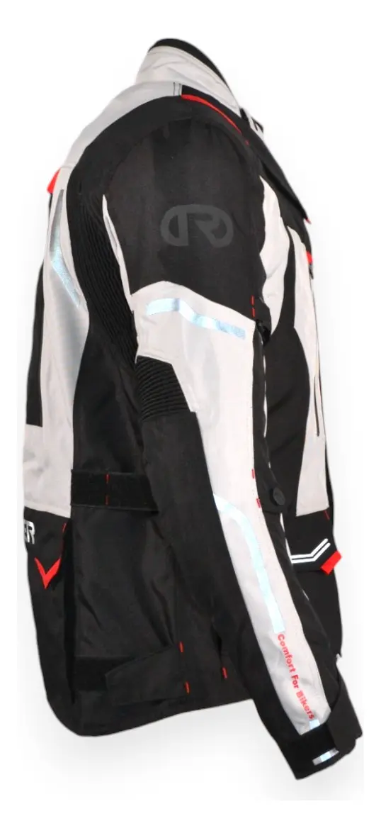 -Refuerzo exterior de tela en hombros y codos (éstas zonas reciben más abrasión en una caída)