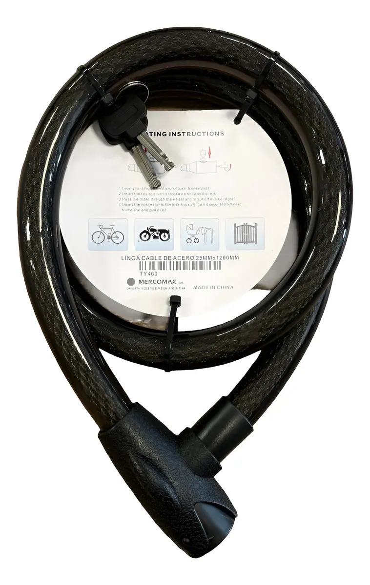 - Candado tipo pitón ideal para bicicletas y motos.