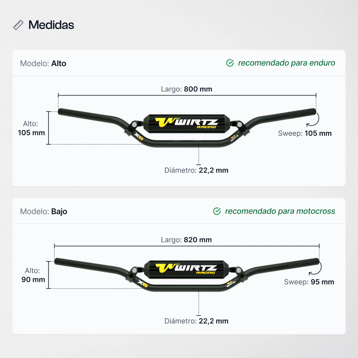 MANUBRIO WIRTZ X6 22mm