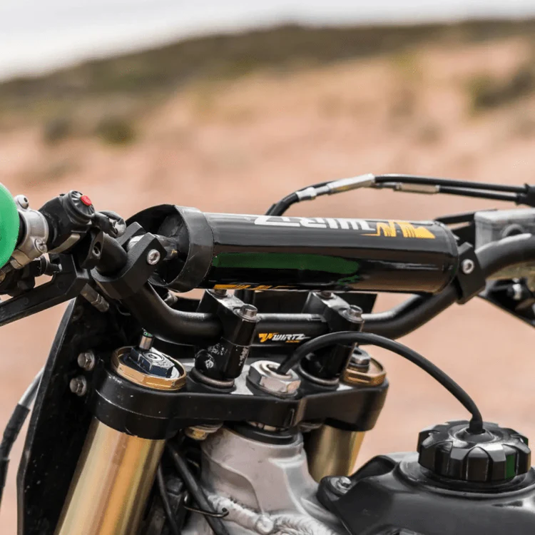 Diámetro estándar de 22 mm, con travesaño de refuerzo y pad central incluido. Anodizado en 15 pasos y moleteado exclusivo en el extremo izquierdo para mejor fijación del puño.
